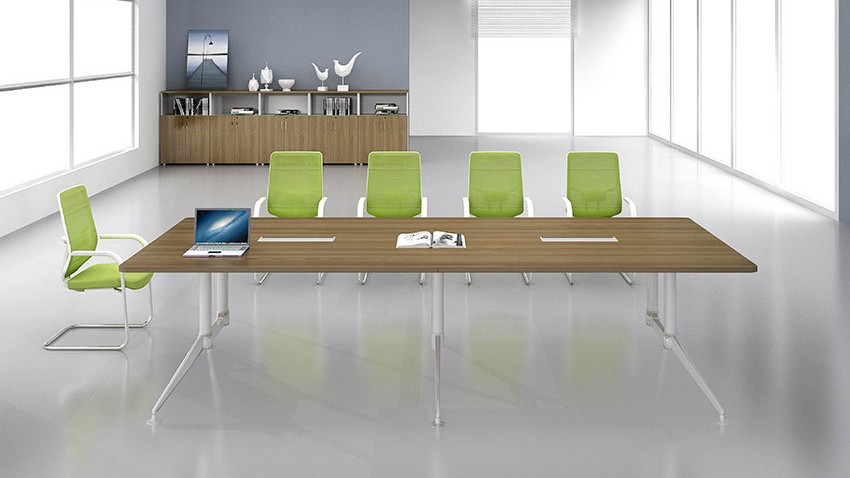 現(xiàn)代簡(jiǎn)約長(zhǎng)條10人板式鋼架會(huì)議桌洽談桌定制廠家介紹: